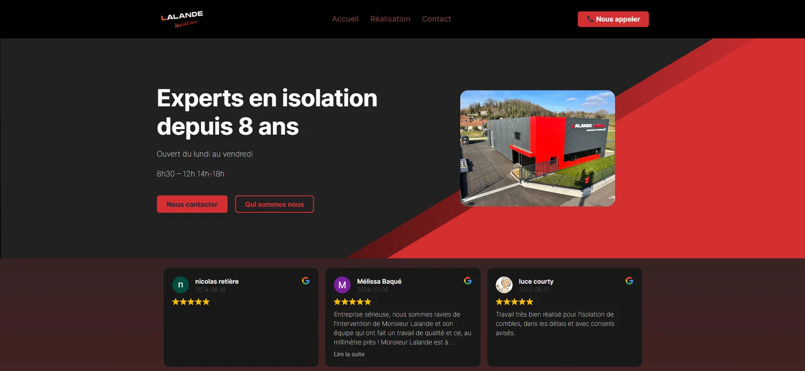 J’ai conçu et développé le site de Lalande Isolation de A à Z, afin de valoriser leur savoir-faire dans l’isolation thermique et acoustique. Le site intègre une gestion de contenus complète, permettant à l’entreprise de mettre à jour facilement ses services, réalisations et actualités sans intervention technique. Mon travail a porté sur : Création du design sur mesure pour refléter l’identité de l’entreprise. Développement web complet (structure, intégration et optimisation). Mise en place d’un système de gestion de contenus intuitif. Optimisation du référencement local pour renforcer leur visibilité sur leur zone d’intervention. Responsive design pour une expérience fluide sur tous les appareils. Le résultat : un site moderne, professionnel et autonome, qui renforce la présence en ligne de Lalande Isolation et soutient leur croissance locale.
